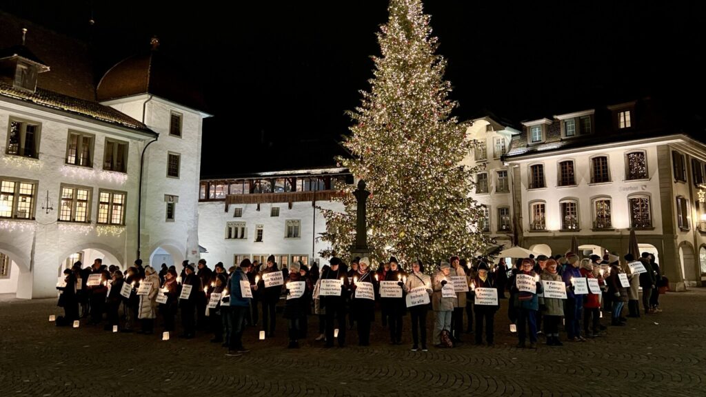 Am Mittwoch, den 11. Dezember 2024, versammelten wir uns mit etwa 100 anderen Menschen auf dem Rathausplatz in Thun. Im Rahmen einer halbstündigen Mahnwache verharrten wir Teilnehmer in stiller Andacht und Gebet. Gemeinsam gedachten wir der Millionen von Menschen weltweit, die aufgrund ihres Glaubens Diskriminierung und Verfolgung erfahren.